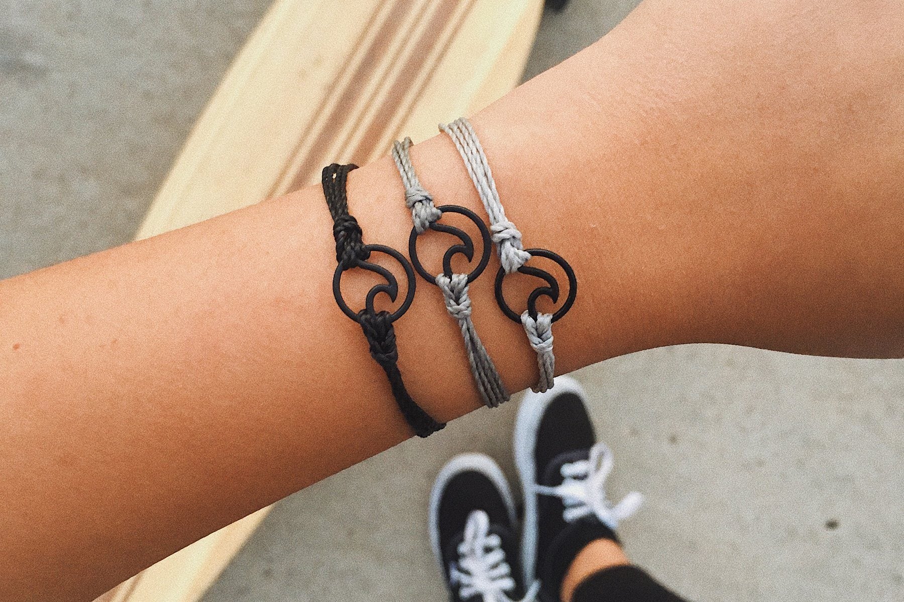 Ride the wave in style with our new Black Wave Charms! This bracelet features three colored strings and a cutout wave charm that looks totally rad worn solo or in a stack.