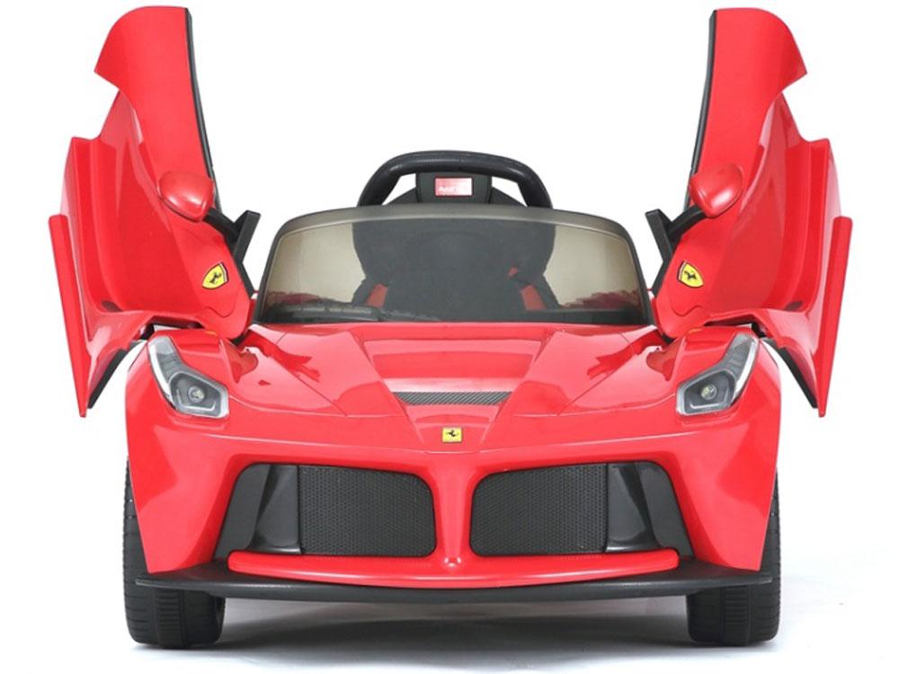 Only for the exclusive few, the Rastar LaFerrari 12v car is every bit as desirable as its adult version. Comes standard with authentic badges, LED lights, Horn,Seat Belt, MP3 input jack, engines sounds and remote control. Parents can drive the car using the hand held remote or your child can opperate with the foot pedal and steering wheel. RC frequency is 2.4ghz. Doors open just as seen in pictures.