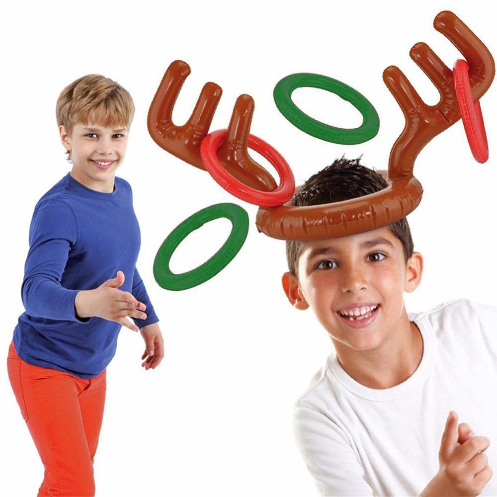 Simply inflate the reindeer antlers and rings, place the antlers on a family member's head and take turns tossing the inflatable rings at them!